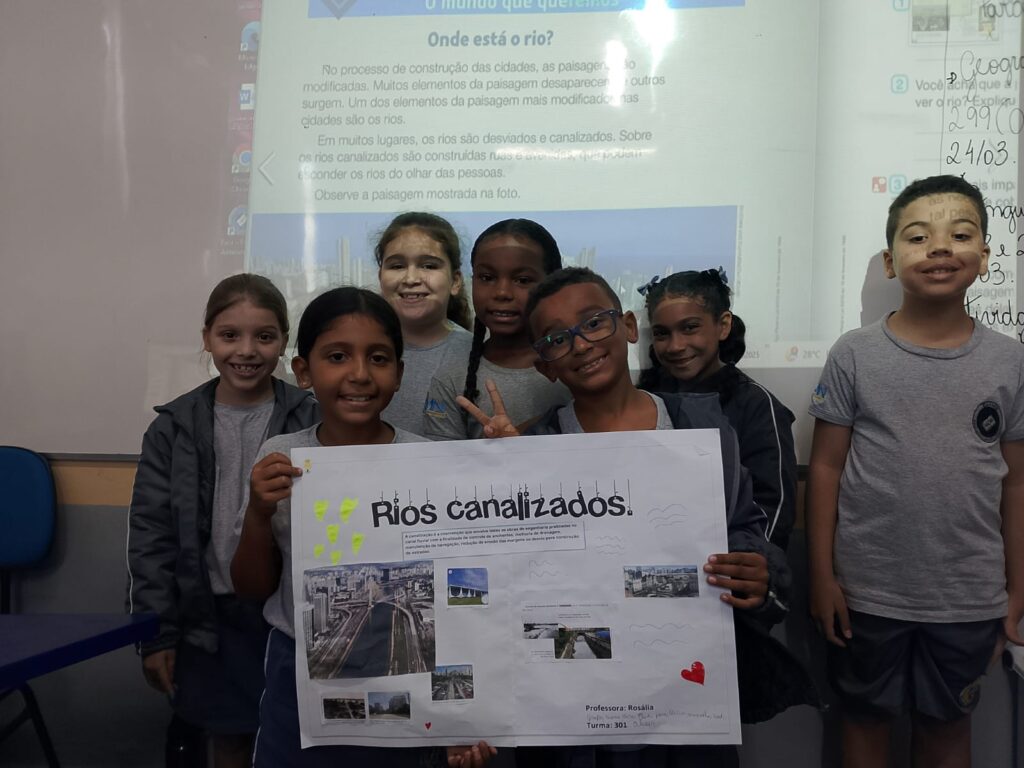 A turma descobriu a diferença entre rios canalizados e não canalizados, entendendo como a ação do ser humano pode transformar a natureza. Entre conversas, observações e muita curiosidade, nossos pequenos construíram conhecimentos importantes sobre o cuidado com o meio ambiente! 💙🌱